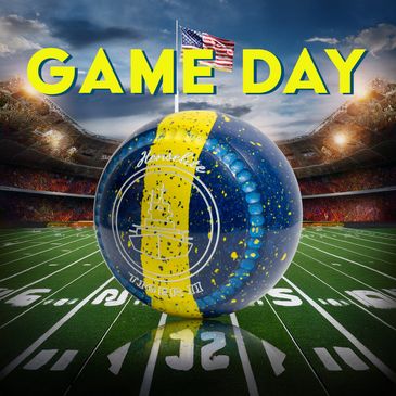 Strike Trilogy Lawn Bowls — Game day is every day with these vibrant blue/yellow/blue bowls.